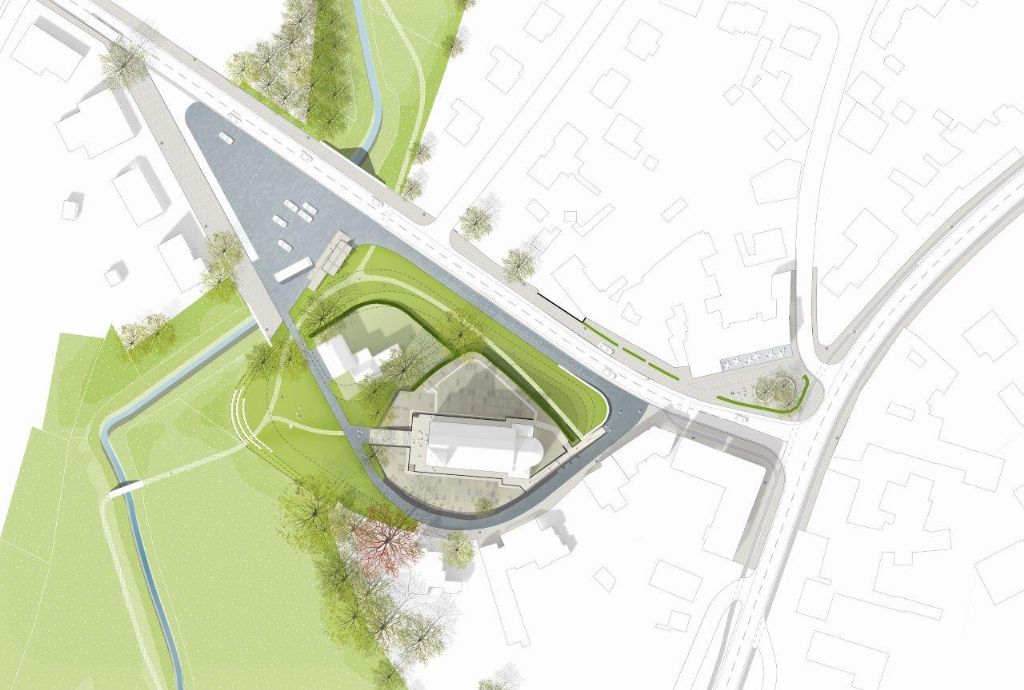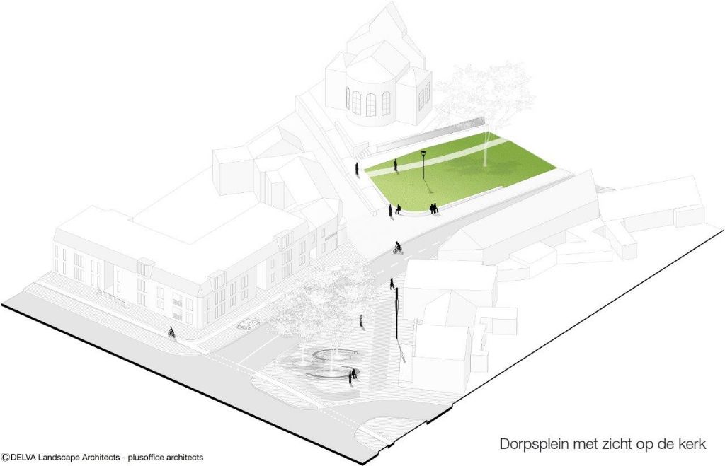 "We kiezen ervoor de kerk weer te vergroenen door de heuvel met zijn voeten in het groen te zetten. Die groene ruimte wordt cruciaal in de verbinding van de twee valleidelen én wordt heel leesbaar als figuur in het dorp."