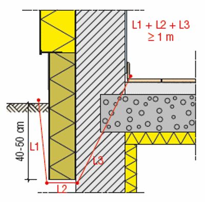 Bij het isoleren langs de binnenzijde (zie de WTCB-Dossiers 2012/4.16 en 2013/2.4) wordt er een isolatielaag aangebracht langs de binnenzijde en tegen de muur (zonder luchtspouw). Deze techniek brengt niettemin een aantal risico’s met zich mee die zorgvuldig beoordeeld moeten worden. De bouwknopen oefenen een niet te verwaarlozen invloed uit op het totale warmteverlies doorheen de wand. Een toename van de isolatiedikte met meer dan 6 tot 8 cm zal vanuit een energetisch oogpunt dan ook enkel zin hebben wanneer ook de aansluitingen zorgvuldig behandeld worden. Men dient bovendien rekening te houden met het feit dat de aanwezigheid van koudebruggen het risico op condensatie en schimmelvorming verhoogt. Hoewel deze vaststelling opgaat voor om het even welke gevelisolatietechniek, is het wel zo dat een isolatie langs de binnenzijde de behandeling van bepaalde knopen bemoeilijkt.