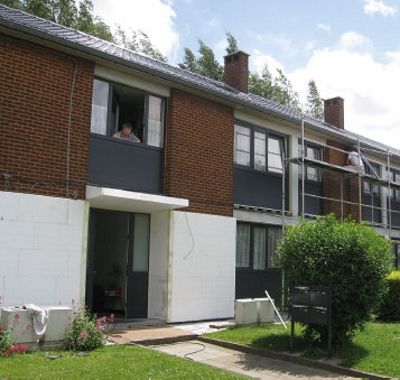 Wanneer een isolatie langs de buitenzijde uitgesloten is, kan men teruggrijpen naar een isolatie langs de binnenzijde, eventueel in combinatie met de na-isolatie van de spouwmuur.