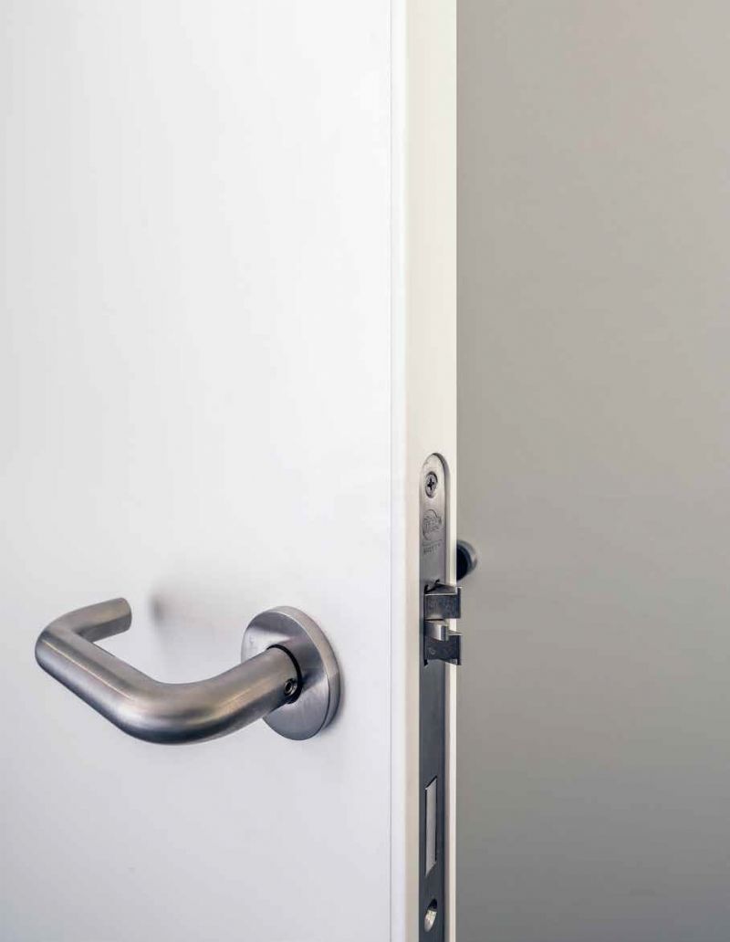 Ongeveer 700 van de 125.000 deuren die De Coene Products jaarlijks produceert, hebben hun weg gevonden naar de AZ Nikolaascampus in Beveren, hoofdzakelijk voor de patiëntenkamers. Het bedrijf produceert deuren die technisch vooruitstrevend zijn, bijvoorbeeld door verbeterde akoestische eigenschappen of inbraak- en uitbraakwerende toepassingen. AZ Nikolaas koos echter vooral voor de sterke brandweerstand van de producten. “Wij hebben een heel arsenaal aan brandattesten voor onze deuren”, zegt Dries Vercauteren, salesverantwoordelijke bij De Coene Products. “Die kunnen enkel verkregen worden door middel van een brandweerstandsproef in een erkend labo. De deur in kwestie moet slagen voor testen op het vlak van vlamdichtheid - er mogen geen vlammen doorkomen - en thermische isolatie (de temperatuur aan de buitenzijde van het deurblad moet onder de 180 graden blijven om zelfontbranding in andere kamers te vermijden). In AZ Nikolaas koos men voor deuren met een minimale brandweerstand van 30 minuten.”