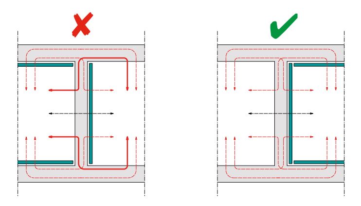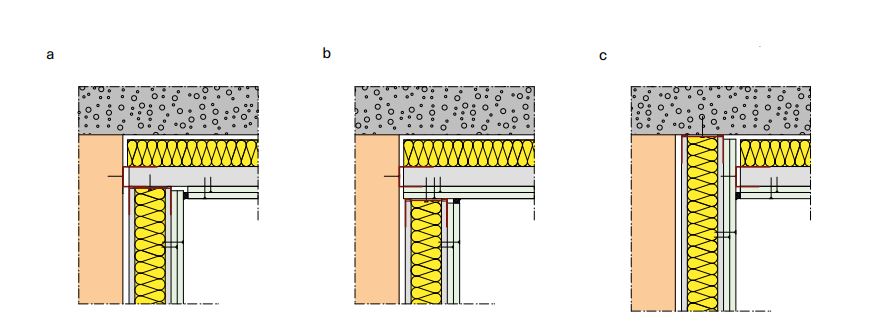 De wijze waarop de voorzetconstructies onderling aansluiten, wordt bepaald door de gekozen montagevolgorde. Deze heeft in principe geen invloed op de akoestische verbetering, voor zover de uitvoering van de aansluitingen met de nodige zorg gebeurt.