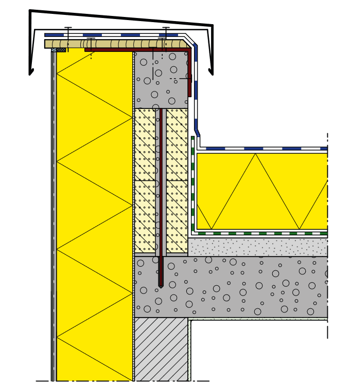 Bij een verankering van de dakopstand (de meest aangewezen oplossing), is het niet nodig om een soepele strook te voorzien, behalve als de fabrikant van de isolatie niet kan garanderen dat de vervormingen beperkt zullen blijven om andere problemen in het dakoppervlak te voorkomen.