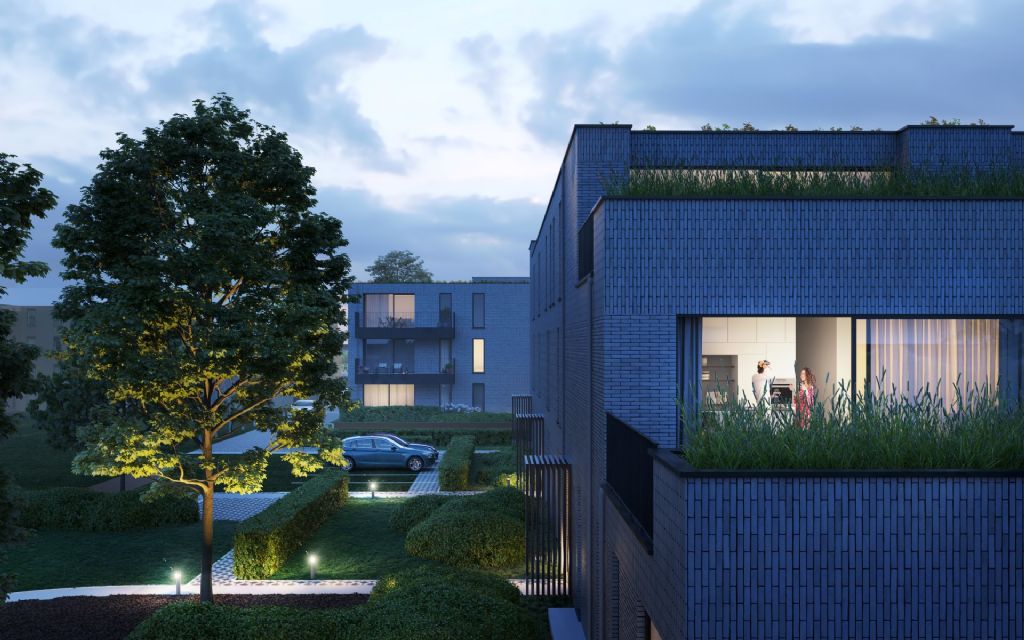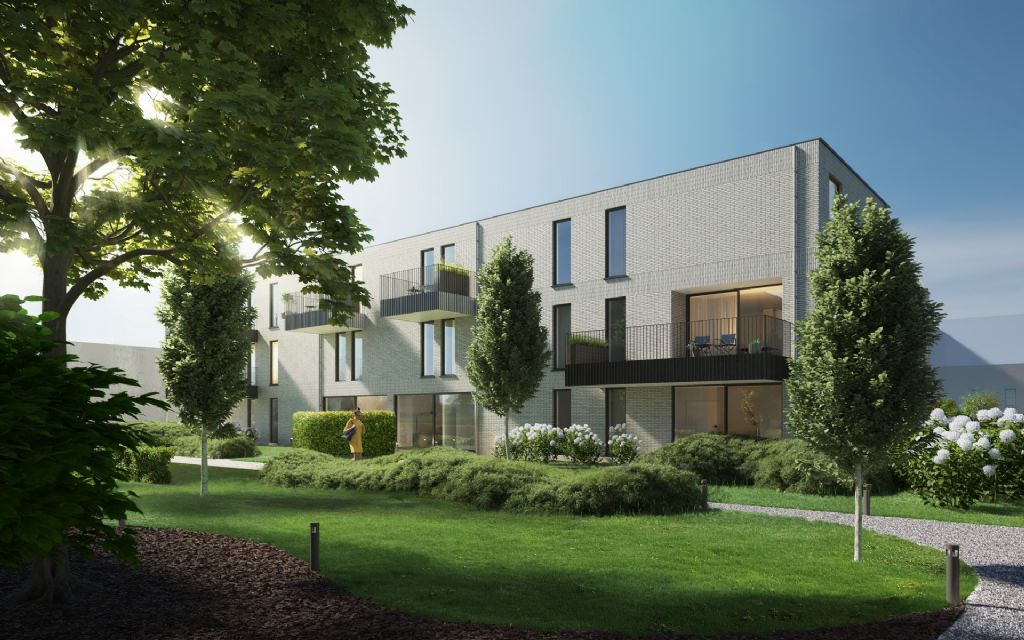 Er werd gekozen voor een lichte, frisse gevelsteen om vooral de natuur te laten opvallen, niet de gebouwen. In het ontwerp wordt ook veel aandacht geschonken aan oriëntatie van de ruime terrassen. Die zijn zo veel mogelijk gelinkt aan de bosrijke omgeving. Het gebouw dat het dichts bij het achterliggende bos ligt, bouwt bovendien af richting dat bos zodat de overgang naar het groen niet te bruusk is. “We weken in ons ontwerp bewust af van de klassieke bouwmogelijkheden die het perceel had door ervoor te kiezen de gebouwen weg te trekken van de straat. Zo creërden we een woonproject mét ademruimte ondanks de ligging in de dorpskern. Op die manier trekken we het naastgelegen bos ook binnen in het woonproject”, vertel Gert Van Ginneken van het Kalmthoutse VGArchitecten bvba.