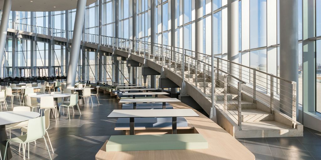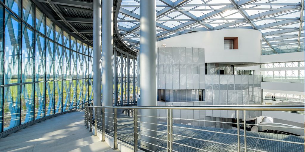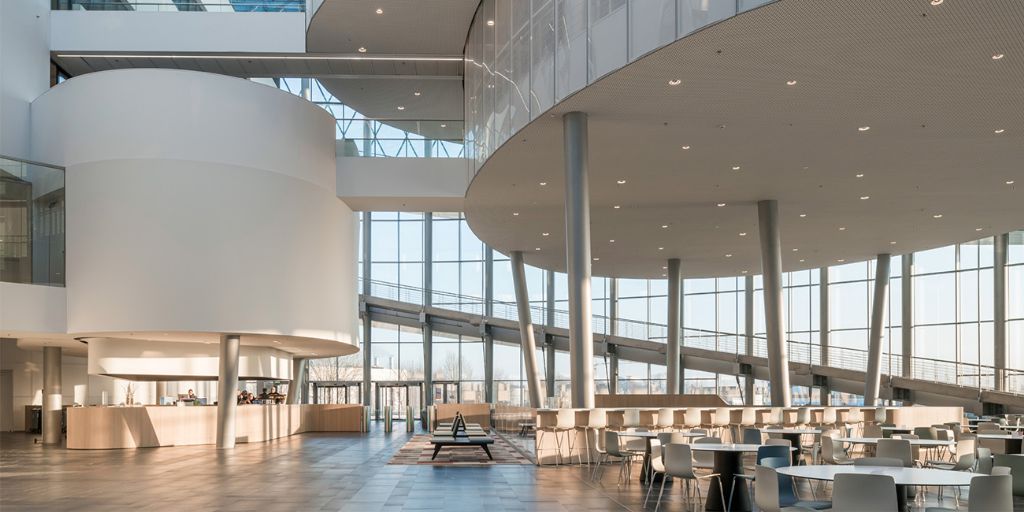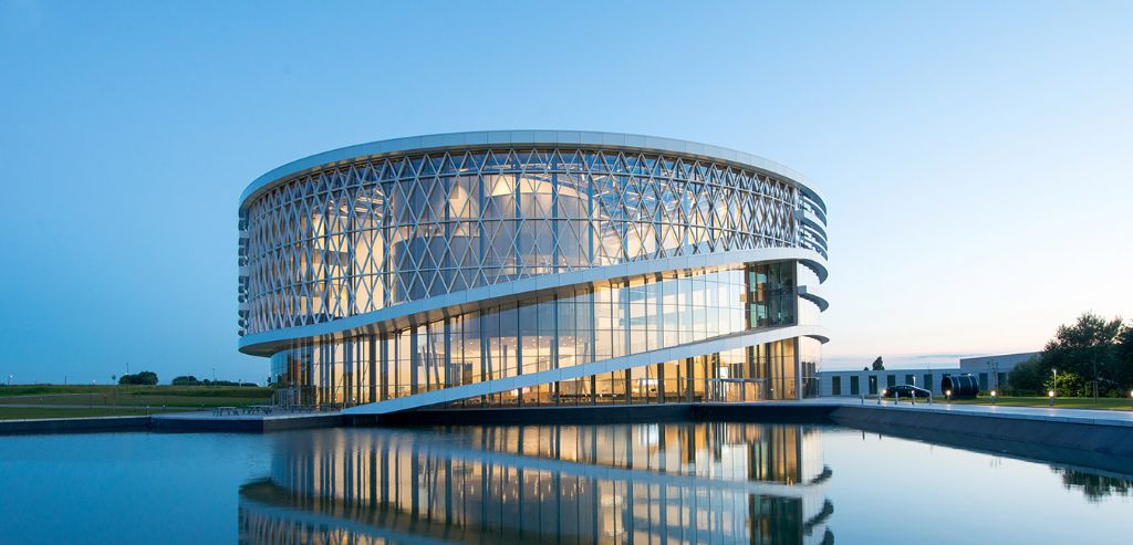 De werknemers van Barco, de Vlaamse wereldspeler op vlak van visuele technologie, werken voortaan vanuit een schitterend nieuw hoofdkwartier. De architecten van Jaspers-Eyers gaven het bedrijf met ‘The Circle’, het centrale gebouw op de site in Kortrijk, een uitvalsbasis met internationale uitstraling. Om het indrukwekkende glazen volume te dragen, kozen ze voor een staalstructuur. VK Architects & Engineers verzorgde de engineering van het geheel.