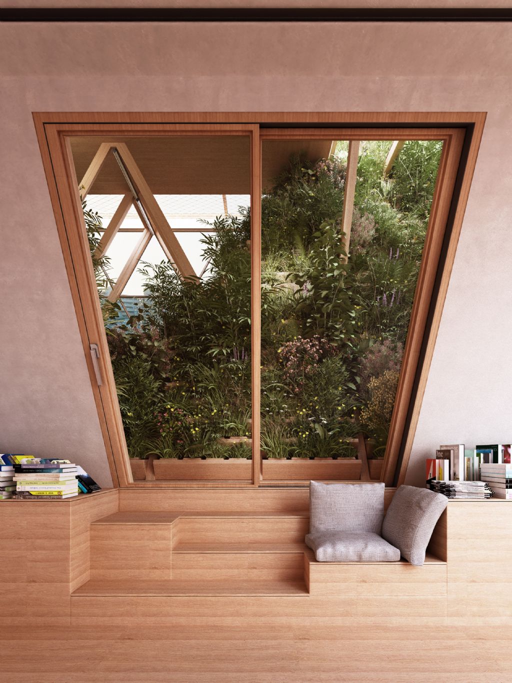 Fei en Chris Precht lieten zich voor hun ontwerp inspireren door hun eigen ervaring. Twee jaar geleden verhuisden de architecten van Peking naar de Oostenrijkse bergen, waar ze hun eigen voedsel kweken.