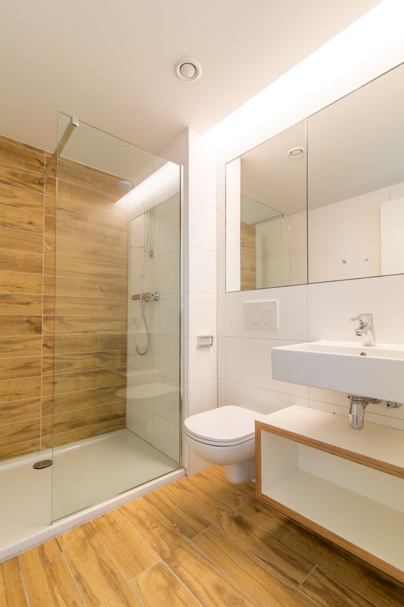 De bureaus, kasten, en het keukenmeubilair zijn opgebouwd uit witte betonplex met de kern in het multiplex. Dit materiaal wordt ook gebruikt voor bekistingen: robuust, maar ook warm. Bovendien zijn de bedden, de tafels, en de banken gemaakt uit slijtvast steigerhout. In de gemeenschappelijke keuken zijn verder geen opendraaiende fronten voorzien om de look van de inox structuur in de keuken niet aan te tasten. Een groendak moet het leven van de dakbedekking verlengen en de ledverlichting in het gebouw beperkt het energieverbruik. De kers op de taart is echter de vloer in de gemene delen en in de inkomhal: op die vloeren ligt parket. Om dit parket te wapenen tegen studentenfeestjes koos HIB voor een 21mm dik samengesteld parket met een toplaag van 6mm barnwood. Dit is gerecupereerd hout van afgebroken hutten uit de VS (Cradle-to-Cradle). Dit hout heeft dus al een leven achter de rug, wat trouwens goed te zien is. De doorleefdheid zorgt er echter voor dat het parket ook de komende 30 jaar kan verouderen, zonder dat iemand zich stoort aan extra vlekken of kleurverschillen.