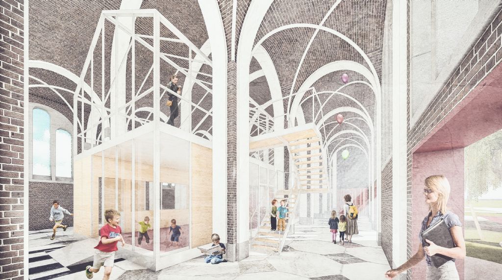 Met het voorgestelde ontwerp wordt de kerk een levendig en lerend laboratorium, waar alle binnenschoolse activiteiten kunnen worden georganiseerd die niet klasgebonden zijn. De kerk kan tevens worden gebruikt voor buitenschoolse activiteiten zoals tentoonstellingen en recepties. Het aanpalende schoolgebouw wordt ook uitgebreid met een nog te bepalen aantal klassen.