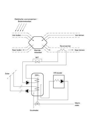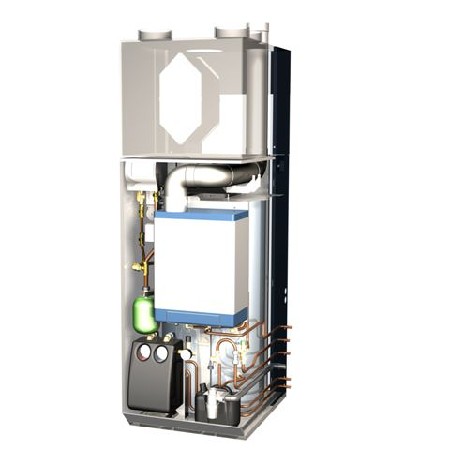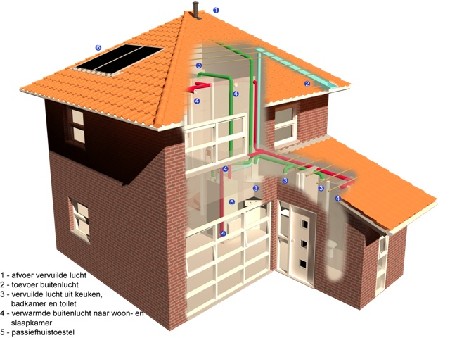 De basis is het warmteterugwintoestel Renovent HR Large met een capaciteit van 400 m³/h. Het zorgt voor een gezonde en comfortabele ventilatie met warmteterugwinning. Hiermee wordt ook voldaan aan de ventilatie-eis. Op basis van de warmteverliesberekening wordt de lucht over de vertrekken verdeeld. Met 400 m³/h bij een inblaastemperatuur van 48°C kan maximaal 3,5 kW aan verwarmingsvermogen worden toegevoerd. De Renovent HR verplaatst afhankelijk van de warmtevraag, afzuigcomfort en vrijekoelvraag tussen de 150 en 400 m³ lucht op een comfortabele wijze, de bewoner kan dit middels een eenvoudige standenschakelaar regelen. Het toestel wordt ook uitgerust met een voorverwarmer die het mogelijk maakt bij buitentemperaturen lager dan 0 ˚C de gevraagde hoeveelheid buitenlucht aan te zuigen en daar middels warmtewisseling de warmte uit de afvoerlucht aan mee te geven. De voorverwarming wordt gerealiseerd door middel van een elektrische voorverwarmer of grondbuis.