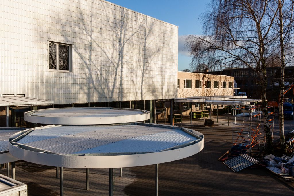 “De school werd in twee fasen gesloopt en neergezet, zodat de kinderen hun lessen gewoon verder konden zetten”, vertelt Cees Van der Meulen van Jan Kuipers Nunspeet. “Het was een technische uitdaging om het plaatje van de architect te vertalen naar een maakbaar iets.”