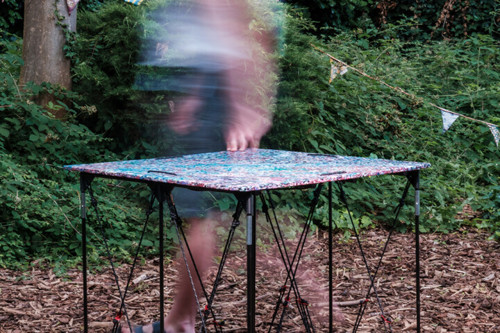Na elk festival blijven er tonnen tenten achter die vaak rechtstreeks op de afvalberg belanden. Wouter zag hierin een kans: hij ontwierp een volledig opvouwbare tafel, met een frame opgebouwd uit de stokken & spankoorden en een tafelblad uit gerecycleerde tentstof. Het resultaat is niet alleen praktisch en draagbaar, maar ook een krachtig symbool van circulair denken. Deze tafel bewijst dat wat ooit afval leek, kan transformeren tot een duurzaam en bruikbaar meubelstuk.