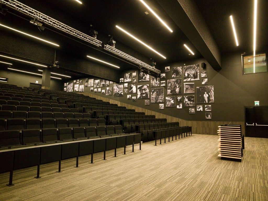 Een van de paradepaardjes is het auditorium, een houten doos verdeeld over twee etages met veel gebruik van zwart en dennenhout, die allebei verwijzen naar het mijnverleden. In de mijnen werden immers pijlers gemaakt van dennenhout en de aanwezigheid van steenkool had ook te maken met de dennenbossen die zich daarboven bevonden.