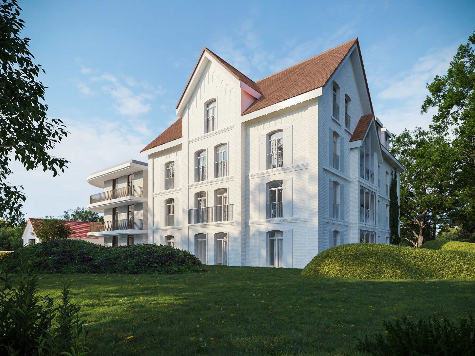 De Kalmthoutse ondernemer Wannes Kuyps reed de voorbije 20 jaar regelmatig langs de witte villa aan de Kapellensteenweg. En elke keer opnieuw kregen de plannen meer en meer vorm in zijn hoofd. Hij kocht het pand met als enige doel: de site terug in ere herstellen. Voor het eerst licht de ontwikkelaar een tipje van de sluier. Daarbij focust het project zich niet enkel op de villa, maar ook het prachtige park. Het park van 3 hectare wordt samengevoegd met het achterliggende stuk groen. Zo wordt het nieuwe park één geheel van maar liefst 5 hectare waardoor het zijn uitstraling van voordien terugkrijgt. Daarvoor werkt Kuyps samen met een team van erfgoedspecialisten en landschapsarchitecten.