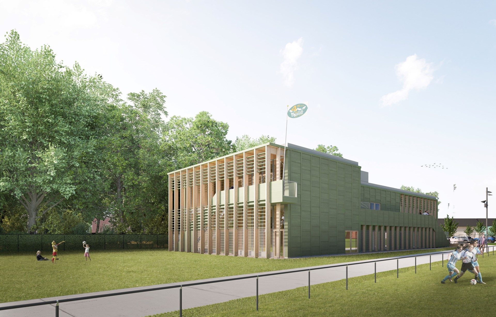 Toekomstbestendige nieuwbouw als moderator tussen scoutsvereniging en voetbalclub (Karuur Architecten)