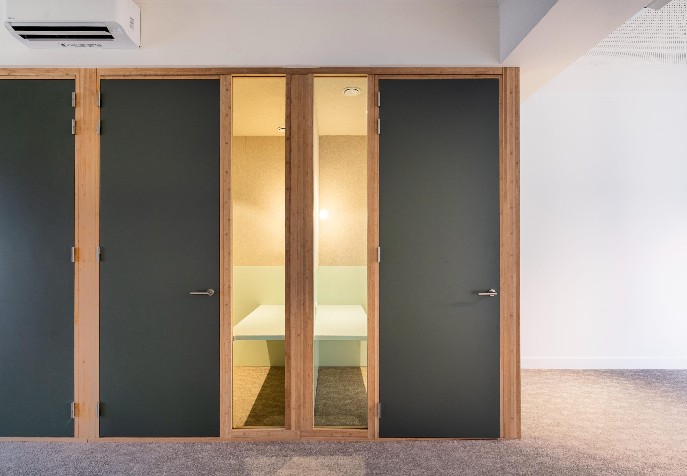 Group Jansen nam het project van A tot Z in handen. De bestaande structuur werd maximaal gerespecteerd, terwijl de binnenafwerking volledig werd afgestemd op hedendaagse noden. Heldere circulatie, aangename werkplekken en stille overlegzones, gerealiseerd met J’Clickd scheidingswanden, vormden samen met duurzame materialen de rode draad. Het maatwerkmeubilair werd verzorgd door Jansen Joinery en sluit perfect aan bij het dagelijks gebruik en de identiteit van Curalia.