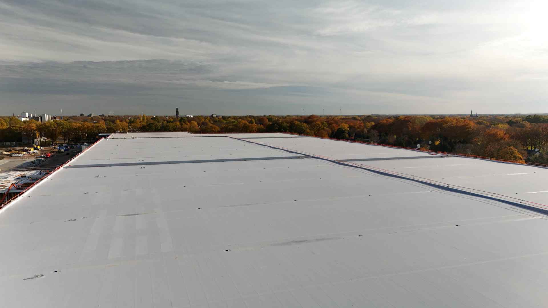 Daarnaast speelt het dak een centrale rol in de energieambitie van het project. Een deel van het oppervlak ondersteunt nu al zonnepanelen om het elektriciteitsverbruik van de kantoren te compenseren. De volledige dakoppervlakte van 80.000 m² is echter structureel en technisch voorbereid op een verdere uitrol van zonne-energie. De toegepaste materialen, waaronder de synthetische dakmembranen van RENOLIT ALKORPLAN, beschikken bovendien over Environmental Product Declarations (EPD’s) die hun milieuprestaties documenteren.