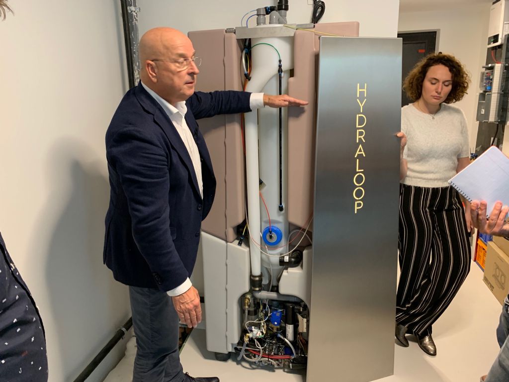 David Mertens, die recent met zijn twee dochters verhuisde naar een woning in het Vlaams-Brabantse Beigem (Grimbergen) kreeg de primeur. “Ik heb nu twee kranen in mijn badkamer, eentje met drinkwater om de tanden mee te poetsen en eentje met warm water van de Hydraloop.”