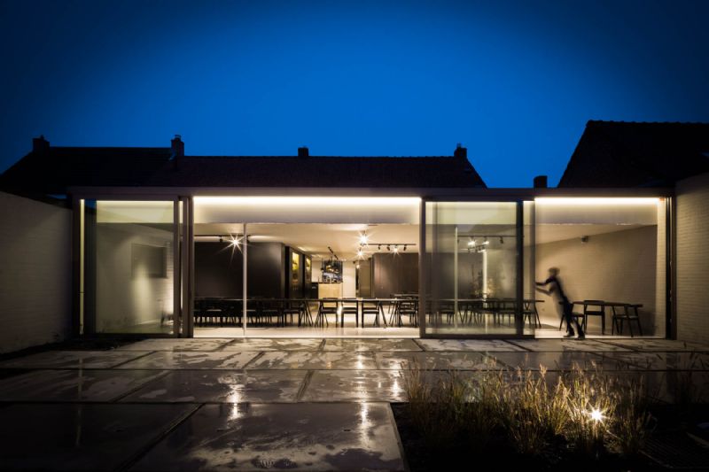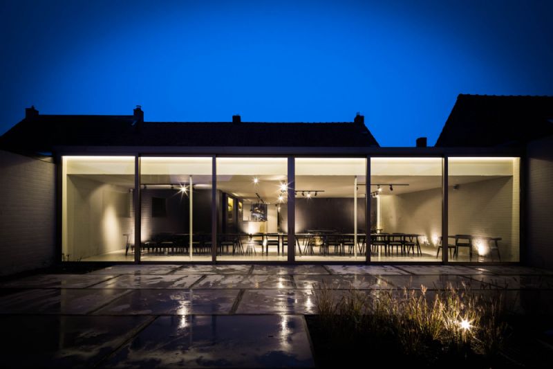 De ingrijpende renovatie die het pand onderging, had als doel de relaties tussen het restaurant, het dorpsplein en het ommuurde terras te versterken. Dit gebeurde door middel van de verschillende ruimtes aan de voorgevel met elkaar te verbinden waardoor de relatie tussen de gasten en het plein versterkt werd.