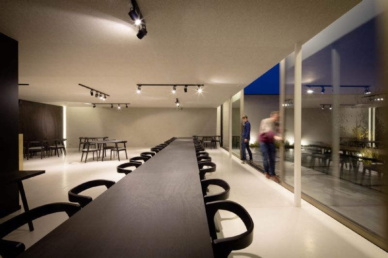 Organisatorisch bestaat het gebouw uit een restaurant en evenementenruimte . Beide functies worden van elkaar gescheiden door 2 functionele volumes waarin keuken en sanitair zijn ondergebracht. Het centrale element dat beide functies met elkaar verbindt, is de toog.