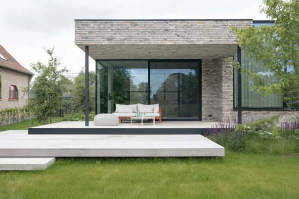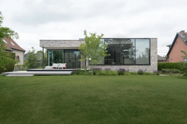 Nano Architecten transformeerden een ouderlijk huis tot een moderne, lichte villa met een warme uitstraling. Het ontwerp van Nano Architecten slaagt hierin dankzij een doordachte materiaalkeuze, met als absolute blikvanger de gevelsteen Nature7 Brick W van Vande Moortel. Deze genuanceerde lichtgrijs-beige gevelsteen zorgt niet alleen voor een verfijnde uitstraling aan de buitenzijde, maar komt ook terug in het interieur.