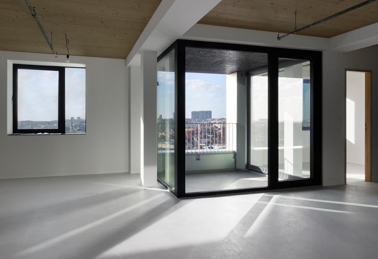 De bureaus A229 en Dethier Architecture gingen de uitdaging aan om dit grootschalige project te ontwerpen, terwijl aannemer In Advance de werken met succes voltooide. Om meer oppervlakte vrij te maken voor de woningen, stelden de architecten voor om de sokkel te verbreden en de toren met 5 verdiepingen te verhogen. Zo werd de oppervlakte bijna verdubbeld: van 6.500 m² naar meer dan 10.000 m². Vandaag telt het project in totaal 99 woningen, gaande van studio's tot appartementen met 5 slaapkamers. Er zijn ook 19 appartementen met 1 slaapkamer en 39 woningen met 3 slaapkamers of meer.