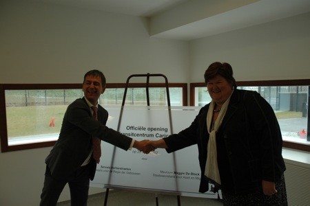 Staatssecretarissen Servais Verherstraeten Maggie De Block tijdens de opening van transitcentrum Caricole