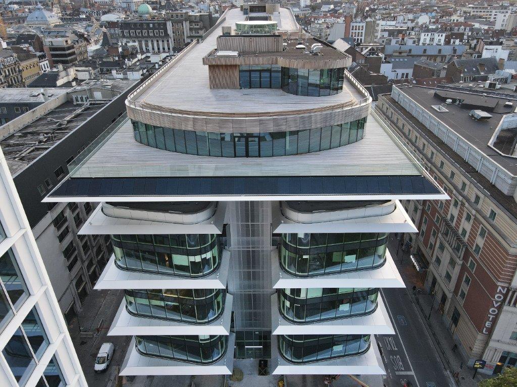 Kortom: Brucity is geen hoogbouw die soeverein boven de omgeving uittorent, noch een gesloten structuur die zich onttrekt aan het bruisende stadsleven. Integendeel: het nieuw administratief centrum is naadloos ingebed in het Brusselse stadsweefsel. “Die interactie met het stedelijk leven vinden we erg belangrijk. Vandaar dat het atrium is ingericht als een transparante ‘binnenplaza’, inclusief publieke doorsteek die enkel in de nachtelijke uren wordt afgesloten. De spreekwoordelijke kroon op het werk is het openbare dakterras. Net als op het dak van Parking 58 in het verleden kunnen Brusselaars er genieten van een mooi uitzicht, terwijl ze tevens de ‘vibraties’ van de omliggende stad oppikken.”