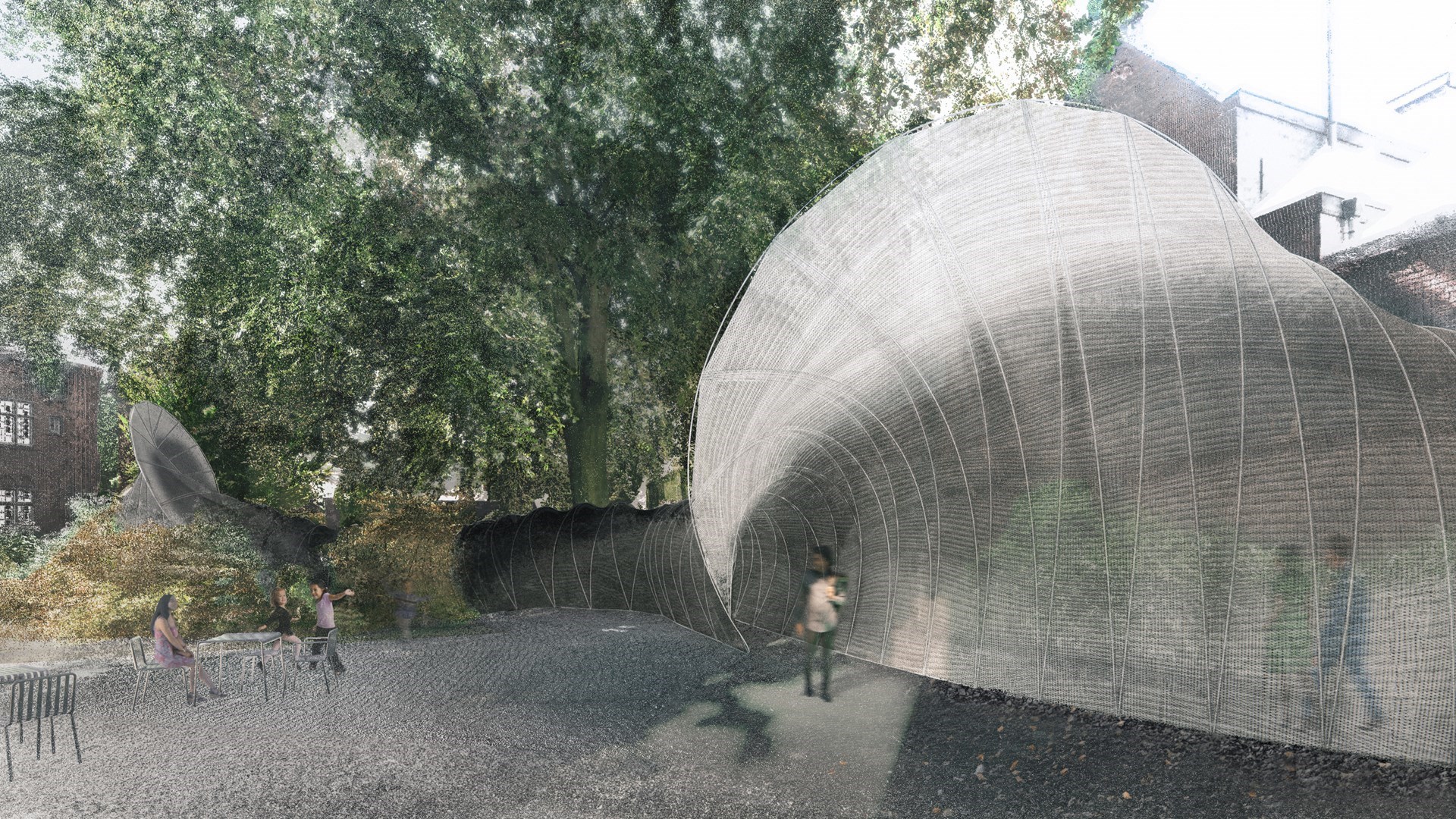 Iets verderop kijken we uit naar het werk van SO–IL dat op de voormalige kloostersite van de Minderbroeders Kapucijnen aan de slag gaat. Het Amerikaanse architectuurbureau werkt er samen met Dr. Mariana Popescu (TU Delft) en het Nederlandse Summum Engineering aan een hoogtechnologisch weefsel dat zich doorheen de omsloten tuin zal slingeren en bezoekers zal begeleiden van stadsdeel naar stadsdeel.