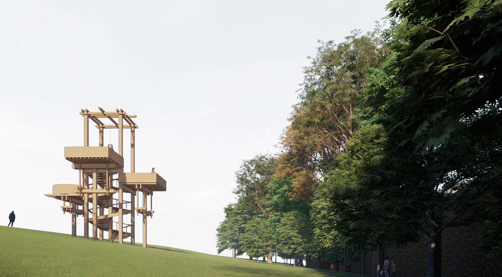 Triënnale Brugge 2024: Spaces of Possibility geeft ook de skyline van Brugge tijdelijk een andere aanblik. Naast de drie middeleeuwse torens prijkt er van 13 april tot 1 september een vierde baken aan de horizon. Het Thaise architectuurbureau Bangkok Project Studio bouwt namelijk aan de overzijde van het Koning Albert I-park een hedendaagse klokkentoren: een houten uitkijkplek die een vergeten stukje park aanduidt. Iedereen zal er welkom zijn om te genieten van dit weinig gekende groen en een andere blik op de stad.