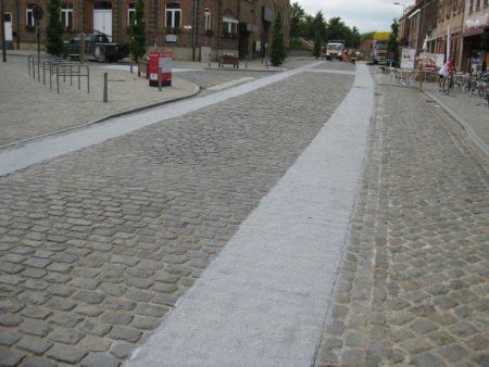 Twee jaar geleden werd de bestrating in de dorpskern van Kemmel heraangelegd met kasseien. Na klachten van fietsers en omwonenden formuleerde Triflex een oplossing om het rijcomfort voor fietsers te verhogen.