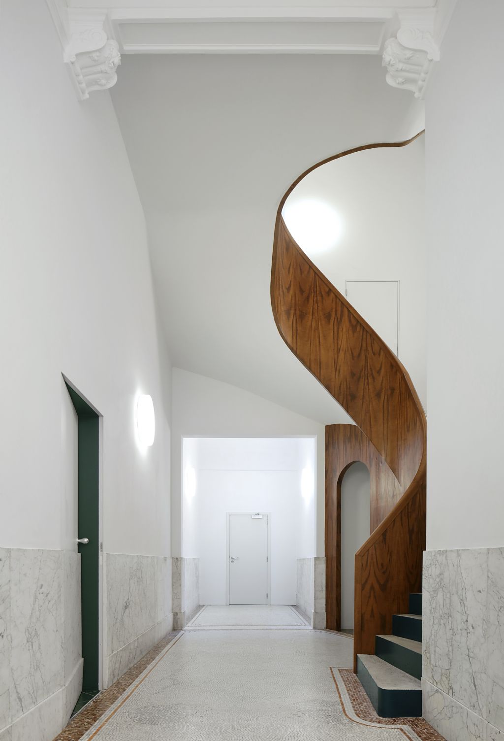 Achter de flamboyante, eclectische gevel gingen een hele reeks oninteressante kamers schuil. Die schizofrenie tussen een meesterlijke gevel en een pover interieur probeerden de ontwerpers in het project op te heffen.
