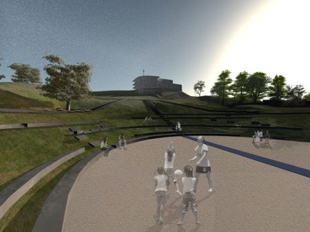 Deze eerste harde layer die recent door de aannemer werd aangevangen, werd aangevuld met een tweede, zachte layer door de plaatselijke jeugdverenigingen. Ze maakten samen met de arbeiders van het ANB wilgentunnels, totempalen, hindernissenparcours en speelse natuurlijke kunstinstallaties. Op deze manier wordt het een ‘gedragen’ park, dat niet enkel in het brein van de ontwerpers ontstond, maar dat ook werd aangevuld door de uiteindelijke gebruikers. In verschillende sessies kwamen de ontwerpers, opdrachtgevers en jeugdverenigingen bijeen om referentievoorbeelden te bezoeken, ontwerpen te bespreken en samen de zachte tweede layer op te bouwen uit ruw materiaal, zoals bomen en stenen, dat ter plaatse voorhanden was. De voltooiing is voorzien rond september 2013 en zal wellicht gepaard gaan met een muzikaal optreden in het amfitheater.