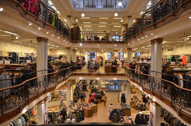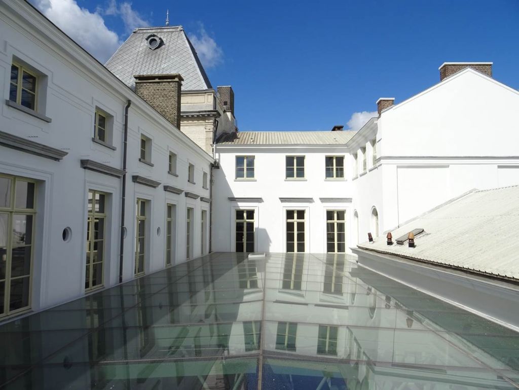 In het interieur werd de prachtige glazen koepel gedemonteerd, gereinigd en na herstelling teruggeplaatst. Een eerder voorzien tussenverdiep werd weggehaald waardoor de monumentaliteit en ruimtelijkheid van het herenhuis opnieuw tevoorschijn kwam. De sierlijke balustrade werd net zoals de parketvloer behouden. Bovendien werden bouwsporen uit het verleden zo veel mogelijk zichtbaar gelaten. Wie goed kijkt ziet bijvoorbeeld nog de sporen van de oude toonbanken op het parket. Bovendien golden er strenge brandweereisen om het pand publiek toegankelijk te maken. Toch slaagde men erin oplossingen te bedenken. Enkel een opmerkzaam oog spot de subtiele tweede vluchtweg in de voorgevel.