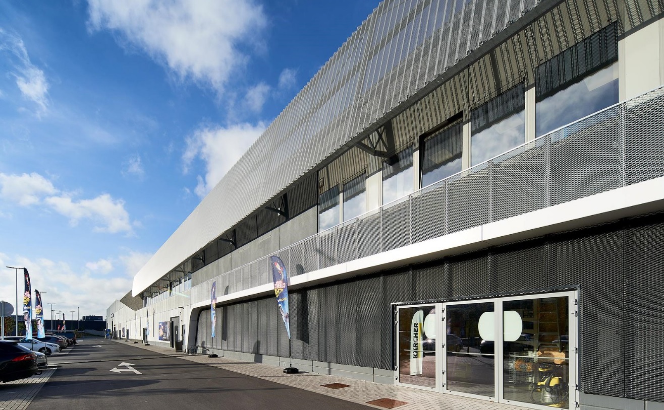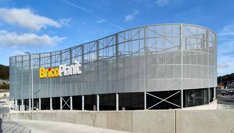 "De draagstructuur van het gebouw bestaat uit beton, dat beter bestand is tegen schokken, en de gevelpanelen uit geïsoleerd beton. Het strekmetaal fungeert dus als een decoratieve tweede huid. Vanwaar deze keuze? “Voor het visuele cachet”, antwoordt Yves Nelis. “In tegenstelling tot andere grote winkels bevindt dit gebouw zich niet in een industriezone, maar net buiten de stad. Een gevelafwerking met betonpanelen, die beperkt bleef tot het strikt noodzakelijke, was dus uit den boze. We moesten de façade zien in te passen in de bestaande stedelijke context. De look van de afgewerkte BricoPlanit oogt veel aangenamer dan een klassiek gebouw.”