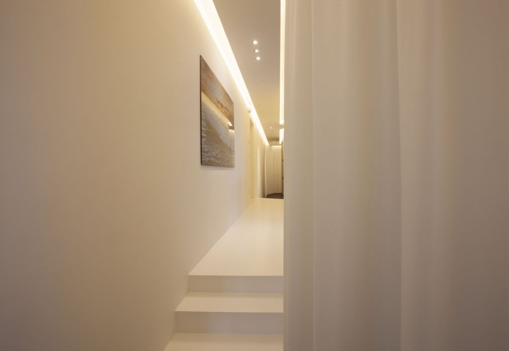 Het contact met het water is voelbaar in alle ruimtes. Het zwartwitkleurenpalet refereert aan de havensfeer. Aan het plein krijgt Merit Capital een gezicht door middel van driedimensionale letters op een sokkel en ook de vermelding B-sure wordt verfijnd opgelicht aan de wand. Het cirkelvormige spanplafond in de grote bureauruimte kan via het uitgebreide domoticasysteem elke gewenste kleur aannemen.