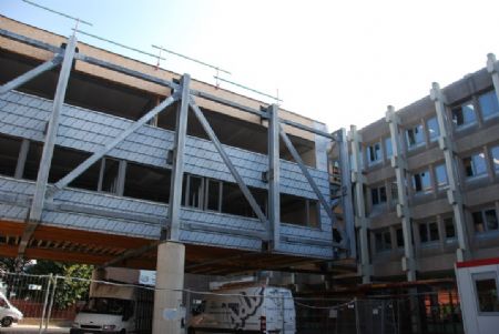 Het ACV-kantoorgebouw in Sint-Niklaas wordt uitgebreid met een nieuwe vleugel die beide bestaande gebouwen verbindt. Het gebouw is opgetrokken uit staal in combinatie met houten vloeren op JJI-liggers en OSB-platen. Ook de buitenwand bestaat uit een constructie van houten balken en OSB-platen voor buitentoepassingen. Promat staat in voor de brandveiligheid.