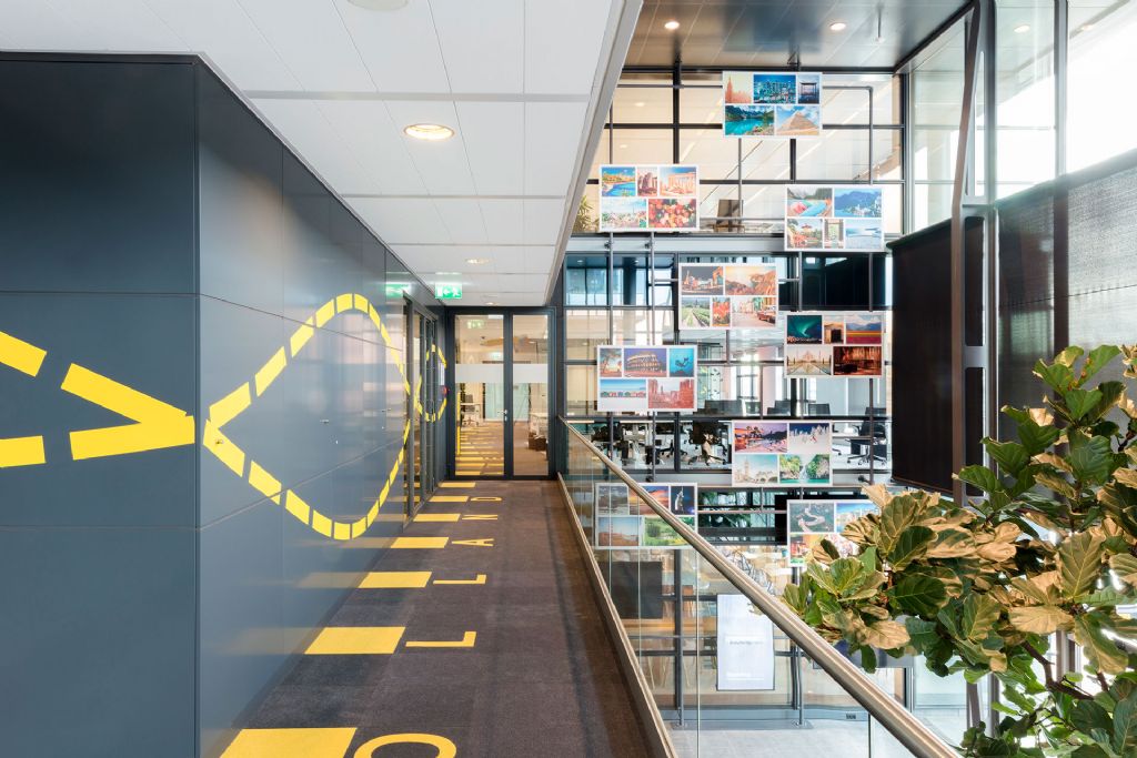Alle acht verdiepingen van het nieuwe kantoorpand van Booking.com zijn voorzien van een uniek interieurontwerp waarin de geschiedenis van de locatie wordt uitgelicht. Zo komt de IJkade terug in de vloerafwerking, de handel van de VOC in de beeldmerken in het restaurant en zijn de cruiseliners die elke zomer aanmeren in de Piet Heinkade verwerkt in het kantoorontwerp.