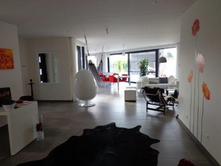 Janines (zorg)woning in Hoepertingen is er één die open en strak, maar tegelijk ook warm en gezellig is. Behalve op functioneel vlak is de woning immers ook op architecturaal vlak een absolute hoogvlieger. “ Aangezien alle functionele aspecten perfect geïntegreerd zijn in het ontwerp, konden we de woning zeer strak afwerken,” licht architect Jeroen Bellings toe. “Functionaliteit en esthetiek gaan in een woning als deze perfect samen. Het plafond is bijvoorbeeld opgebouwd uit preplaten, een verloren bekisting in beton die grote overspanningen en het plaatsen van nieuwe structuurwanden op de verdieping mogelijk maken, maar die door hun strakke uitzicht tegelijkertijd ook een esthetische meerwaarde bieden. De mooie meubels en de goedgekozen kleuraccenten in de woning zorgen dan weer voor de nodige gezelligheid.”