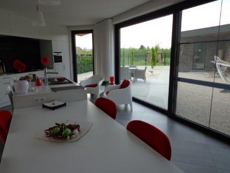 Ze opteerde dan ook voor een nieuwbouwproject en sprak meteen een bevriende architect aan, meer bepaald Jeroen Bellings. Het was aan hem om de wensen van Janine in de praktijk te brengen: “Janine wilde een open woning met een kleine, onderhoudsvriendelijke tuin, zodat ze steeds voldoende bewegingsruimte zou hebben,” vertelt Bellings. “We zaten met een specifieke bouwgrond (een restperceel), maar zijn er uiteindelijk in geslaagd om een open bebouwing op de perceelgrens te realiseren. Het mag gezegd dat het een zeer mooie woning is geworden die perfect aansluit bij eventuele (toekomstige) noden.”