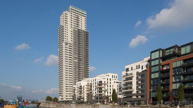 Met zijn 42 verdiepingen wordt dit prestigieuze woonproject ook wel het kloppende hart van de vernieuwde Brusselse Kanaalwijk genoemd. Naar het voorbeeld van andere grote Europese steden vind je in de directe omgeving trendy winkels en restaurants, nieuw aangelegde parken en moderne culturele sites die een trekpleister vormen voor zowel inwoners als toeristen.