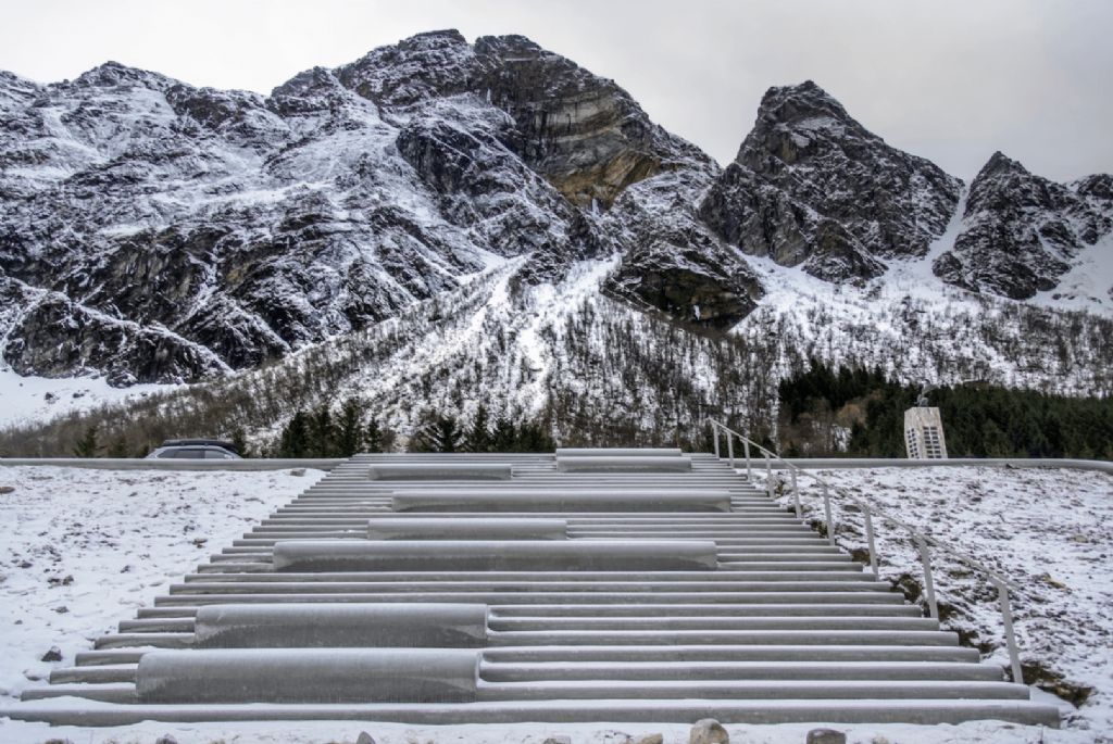 Het uitzicht vanop de trappen op de fjord en de oceaan zorgt voor een unieke ervaring.