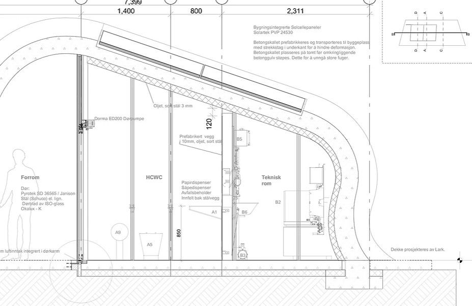 De volledige site van Ureddplassen is een ontwerp van de Noorse architecten Marit Justin Haugen en Dan Zohar, in samenwerking met Landskapfabrikken en is zo’n 2.000 m2 groot.