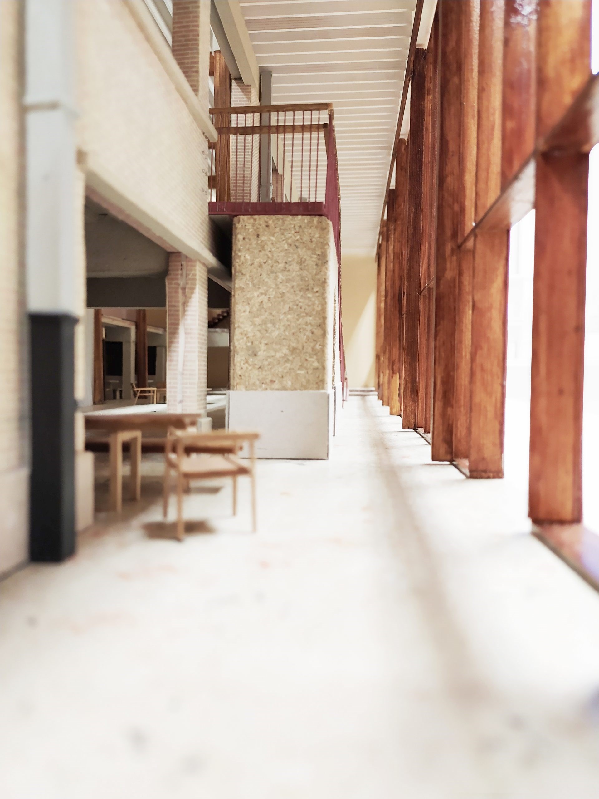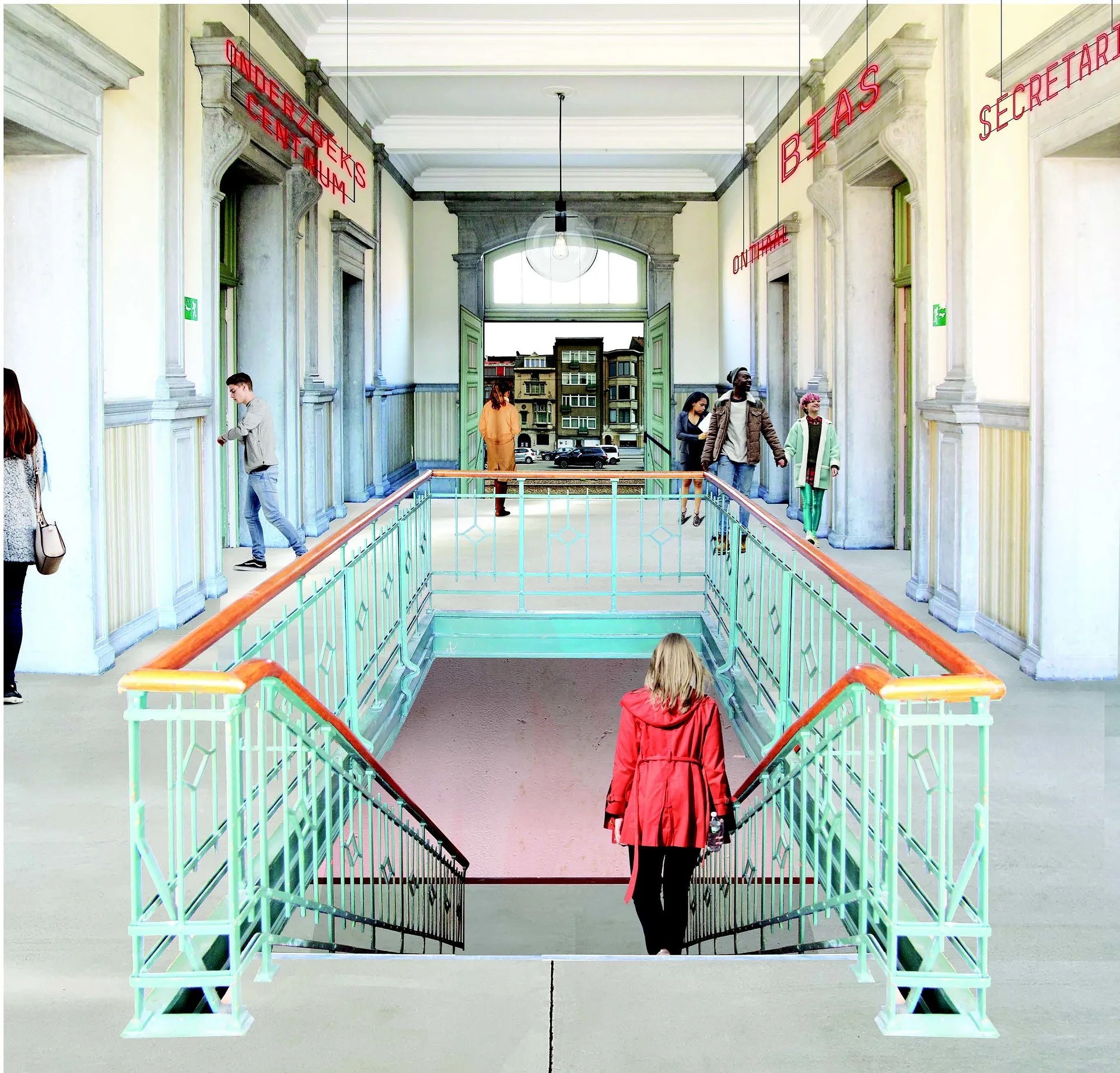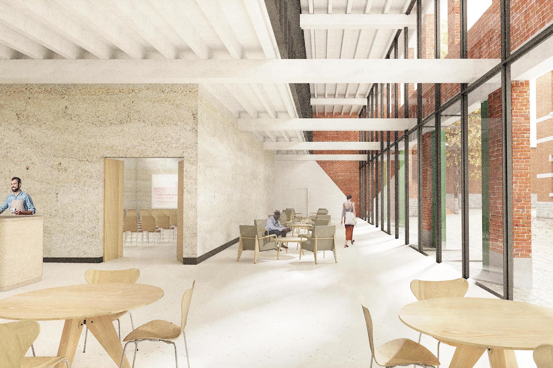 Het ontwerp laat zich sterk leiden door de bestaande gebouwen en de circulaire ambities. Dit bepaalt wat er mogelijk is qua programma en lay-out. Toevoegingen, zoals een tussenbouwvolume, zijn voorzien in houtskelet. De verblijfruimtes krijgen een mezzanine in houtbouw die demonteerbaar is. Het principe van woonboxen wordt toegepast en nieuwe interventies zijn eenvoudig hermonteerbaar en integreren alle diensten volgens het served-servant concept.