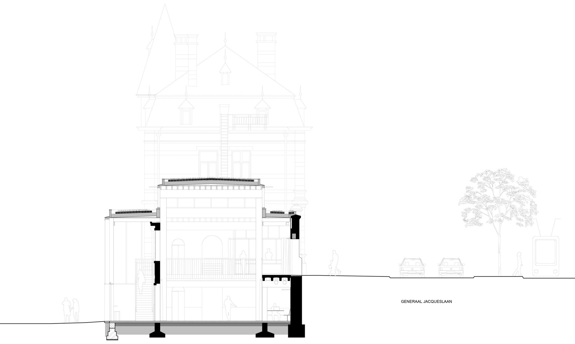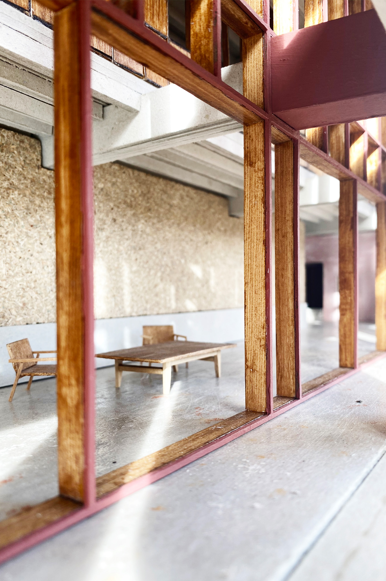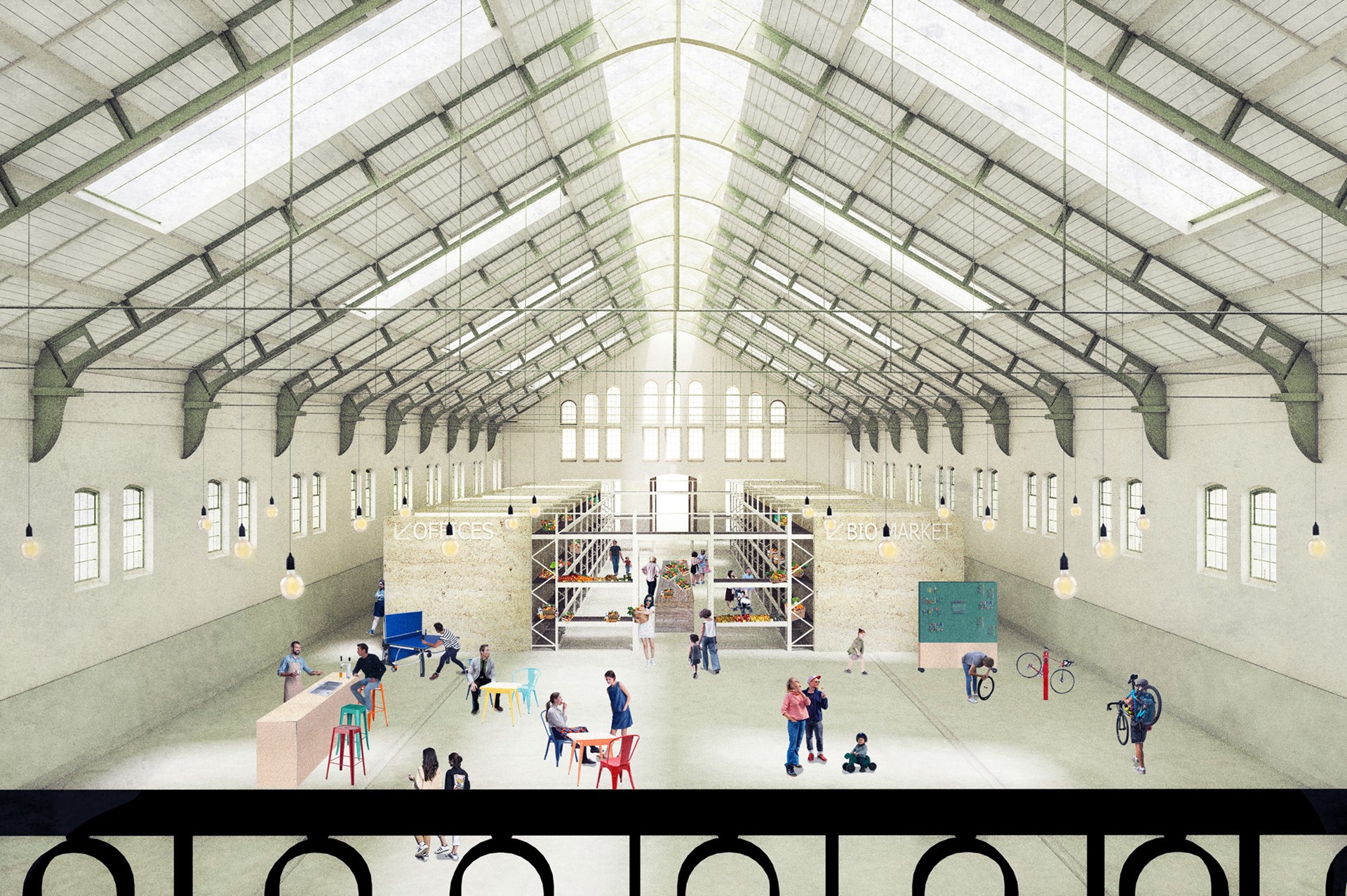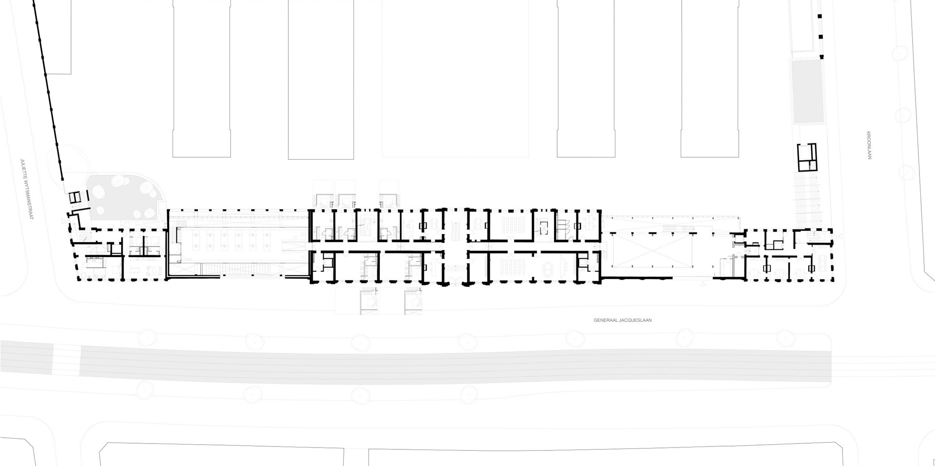 Het ontwerp laat zich sterk leiden door de bestaande gebouwen en de circulaire ambities. Dit bepaalt wat er mogelijk is qua programma en lay-out. Toevoegingen, zoals een tussenbouwvolume, zijn voorzien in houtskelet. De verblijfruimtes krijgen een mezzanine in houtbouw die demonteerbaar is. Het principe van woonboxen wordt toegepast en nieuwe interventies zijn eenvoudig hermonteerbaar en integreren alle diensten volgens het served-servant concept.