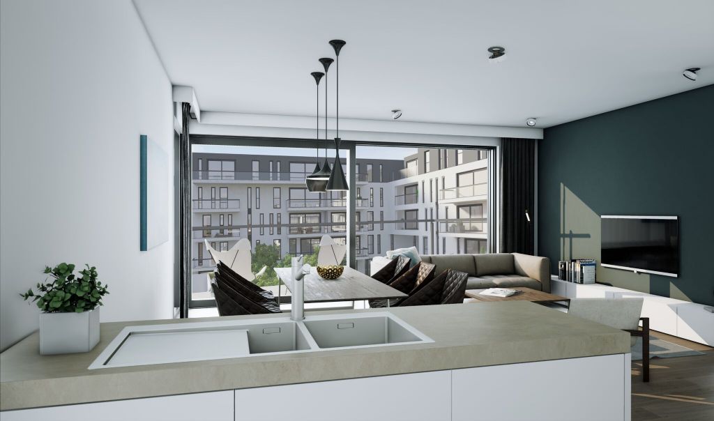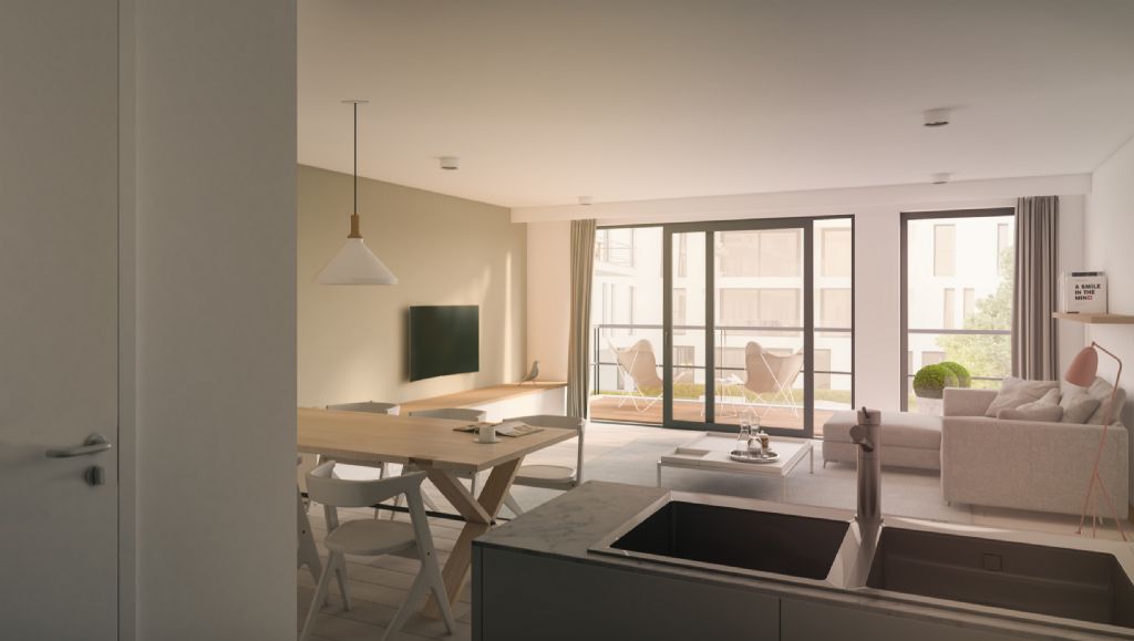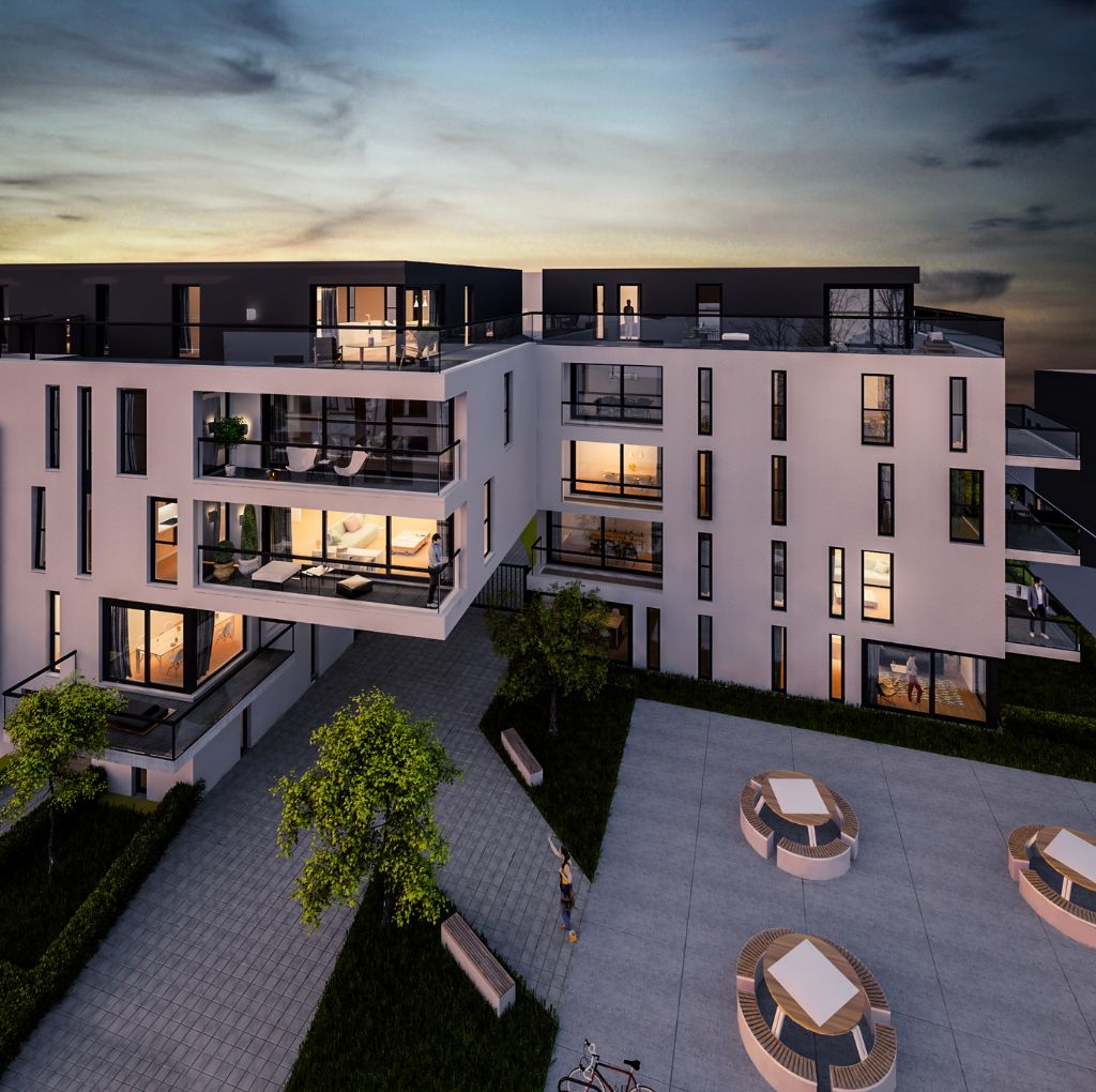 Het project voorziet ook in een ondergrondse parking met 54 parkeerplaatsen en 61 fietsstaanplaatsen. Het merendeel van de appartementen is zo georiënteerd dat ze zowel zicht hebben op de straatzijde als op de tuinzijde van het complex.