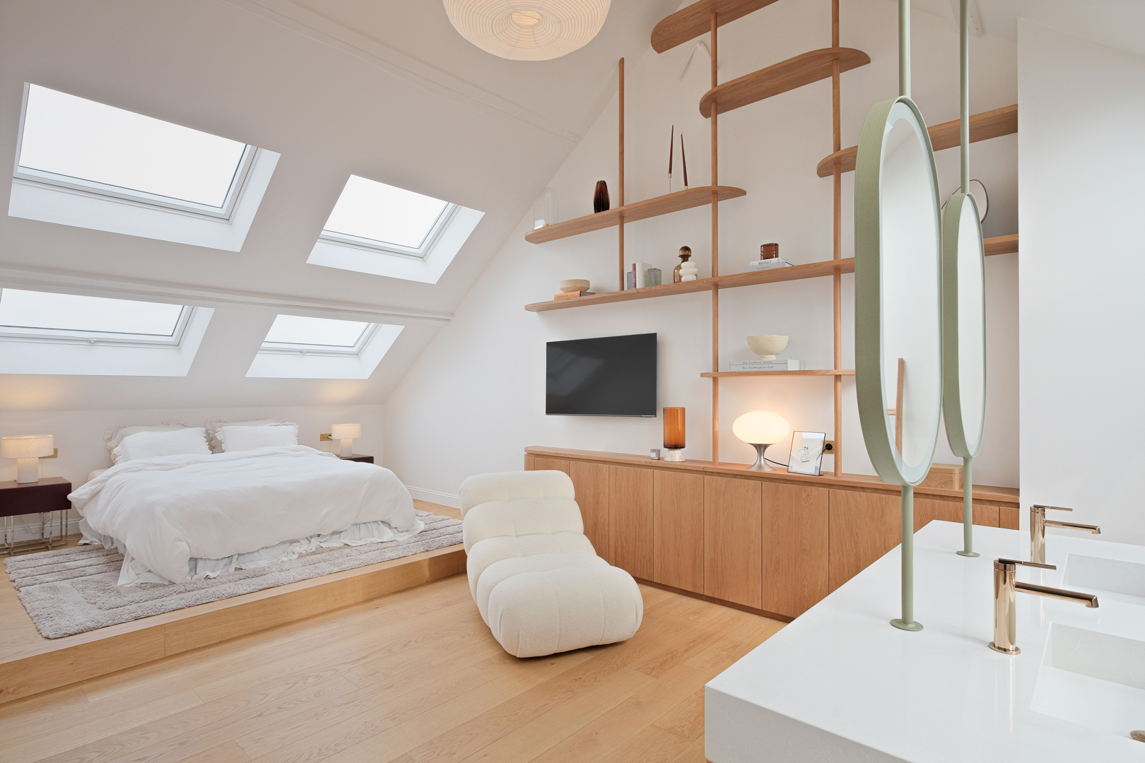 De case van Maison Orielle sluit aan bij een reeks ontwerpprincipes die richtinggevend zijn voor hedendaagse zolderrenovaties: