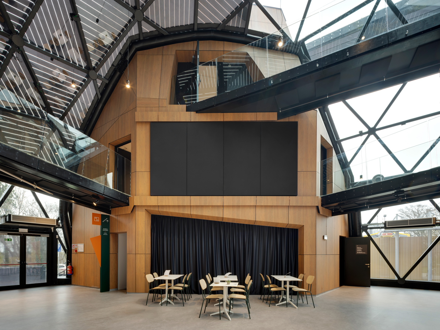 De nieuwe invulling van het paviljoen, met een mix van tentoonstellingen, evenementen en digitale installaties, stelde andere eisen aan het gebouw en maakte een kwalitatieve geluidsbeleving essentieel. Dankzij een doordachte integratie van akoestische maatregelen werd het comfort voor bezoekers merkbaar verbeterd, zonder afbreuk te doen aan de architecturale expressie.