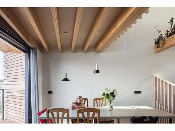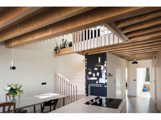 “De dakwoning is het resultaat van een groot engagement van de opdrachtgever en een intense participatieve samenwerking tussen en constructieve houding van alle betrokken partijen en administratieve overheden”, vertelt architect Tom Vanhee. “We ontwierpen een passieve woning met een duurzaam karakter. In ons ontwerp streefden we naar ruimtelijk kwalitatieve ruimtes die voor zo’n geliefde woonbeleving zorgen dat er in de toekomst waarschijnlijk weinig veranderingen vereist zullen zijn. Is dat toch het geval, dan maken de lichte wanden een andere lay-out van de ruimte toch mogelijk.”