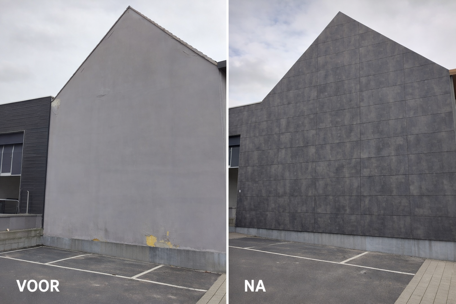 Wat begon als een functionele keuze voor tafelbladen, groeide uit tot een bredere materiaalvisie. Bij de renovatie van de eigen toonzaal besliste Hilma om ook de zijgevel te bekleden met volkernpanelen. Het gekozen decor Cave, met een genuanceerde steenlook en een voelbare structuur, geeft het gebouw een hedendaagse en robuuste uitstraling. Zo wordt het materiaal niet alleen verwerkt in het productaanbod, maar ook zichtbaar geïntegreerd in de architectuur van het bedrijf zelf.