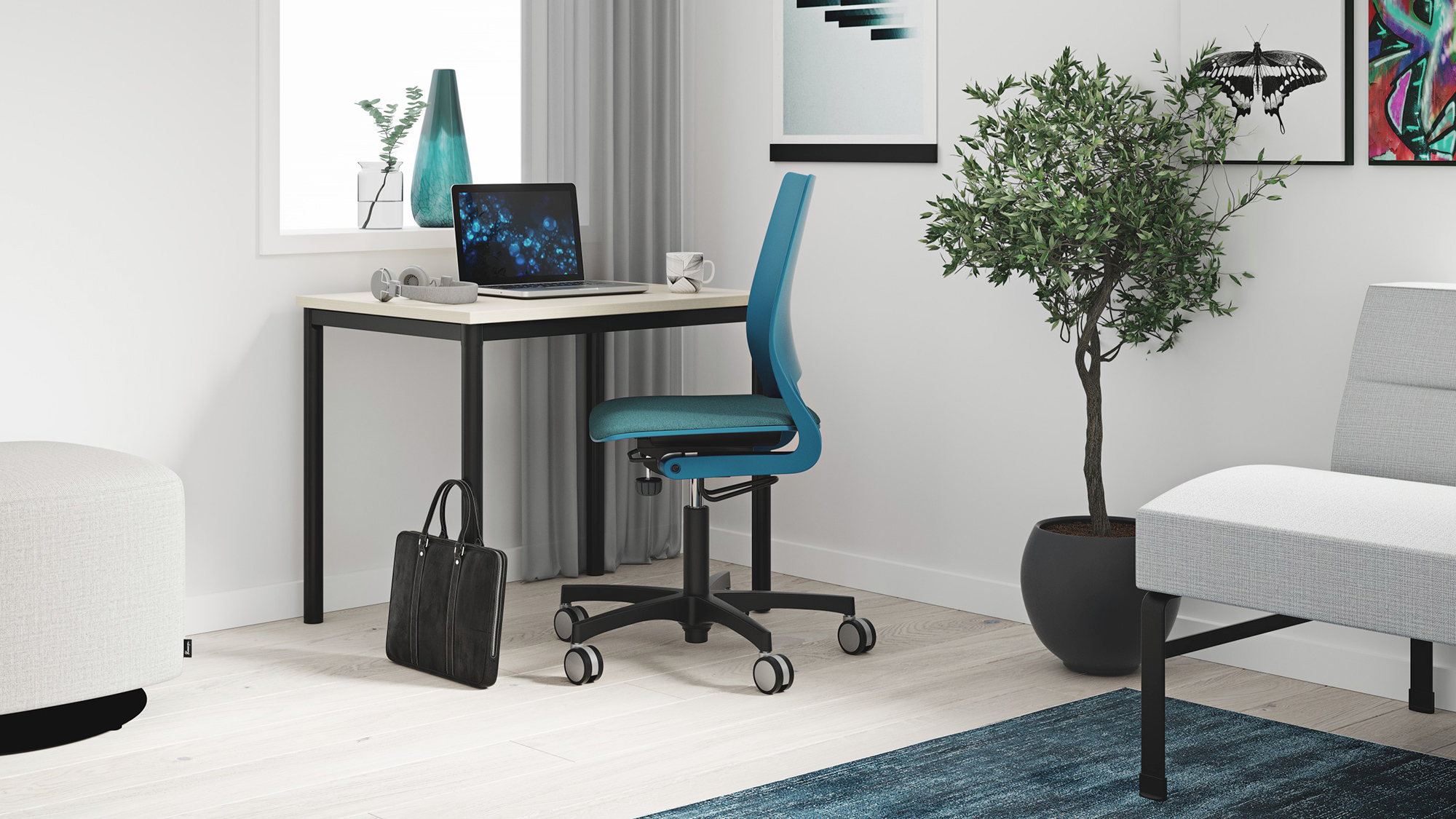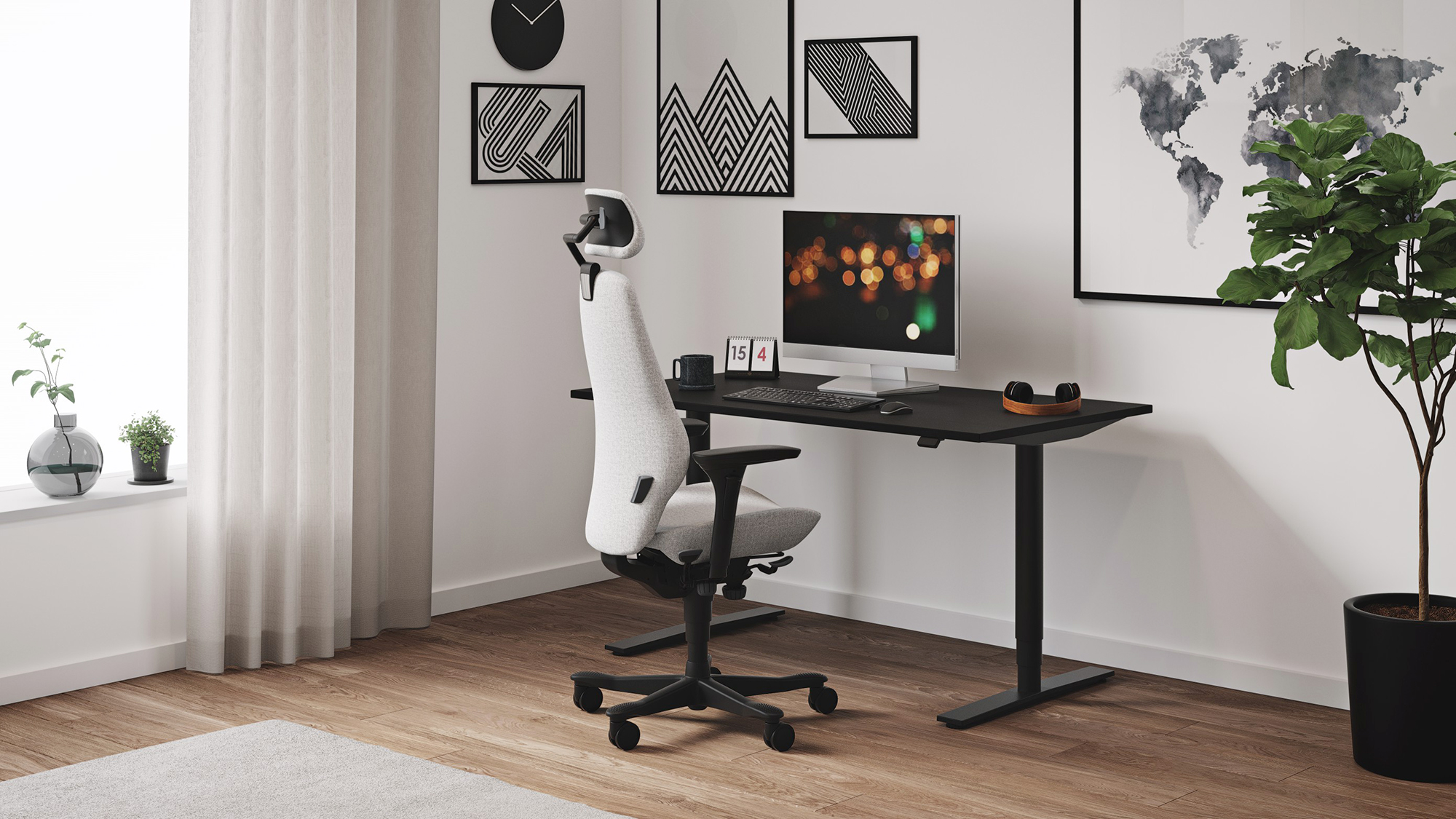 2. Kies voor aantrekkelijk meubilair. Heb je niet de ruimte om een afgesloten kantoor te maken? Kies dan voor meubilair dat perfect aansluit bij je leefruimte: warme materialen en stoffen zorgen ervoor dat je bureau één wordt met je woonruimte. Scandinavisch designmeubilair voelt zich overal thuis, en zorgt ervoor dat jouw werkplek de thuisomgeving niet domineert.
