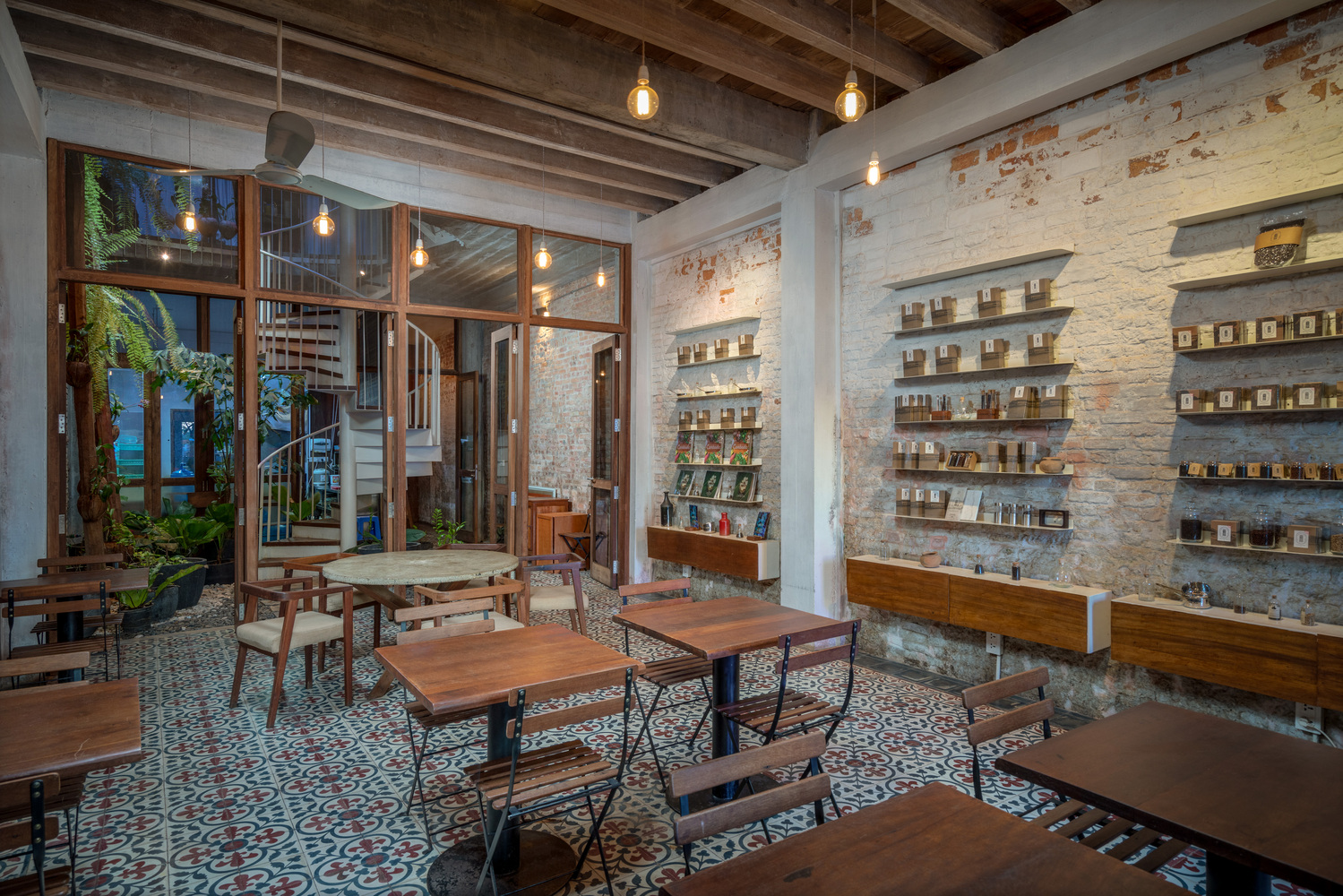 Het gebouw huisvest een restaurant op het gelijkvloers en een moderne residentie. Elke kamer wordt natuurlijk geventileerd en verlicht door de grote binnenplaats. Die binnenplaats vormt het centrale element van het interieur en vervaagt de binnen- en buitengrenzen.